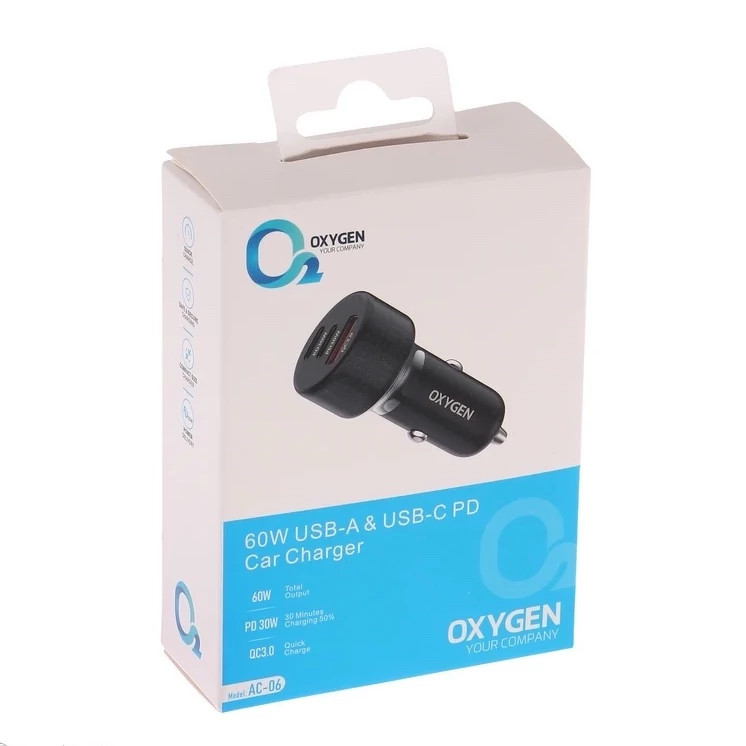 شارژر فندکی 60 وات سه پورت اکسیژن مدل AC-06